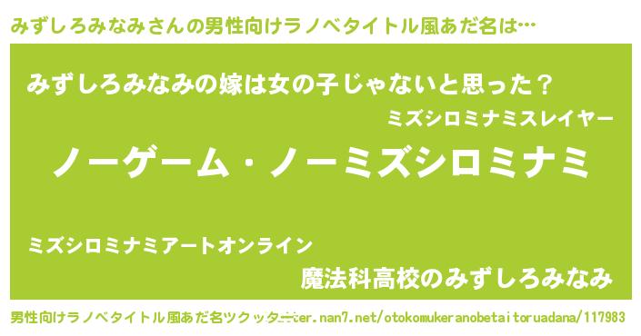 | ヒーロー風カッコイイあだ名 | 『慈愛の使者みずしろみなみ』 |