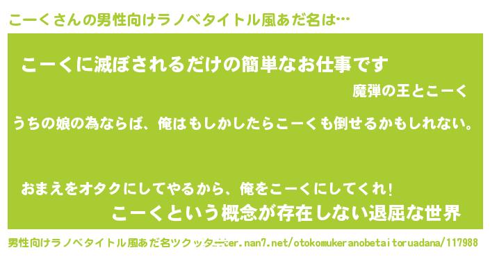 | 女子向けラノベタイトル風あだ名 | 『こーくの婚約者』 |