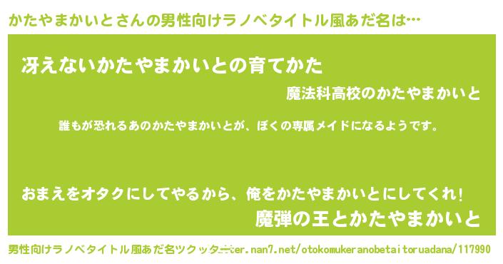| 女子向けラノベタイトル風あだ名 | 『異世界でカフェかたやまかいとを開店しました。』 |