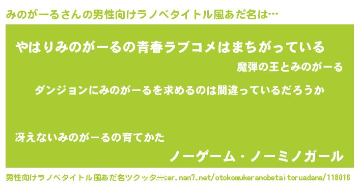 | 女子向けラノベタイトル風あだ名 | 『みのがーるは平凡を望む』 |