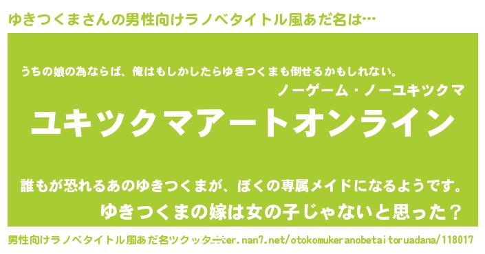 | ファンタジー風あだ名 | 『ユキフェル』『エターナルユキツクマー』 |