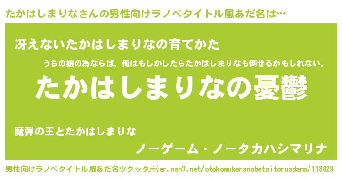 女子向けラノベタイトル風あだ名 | 『(仮)たかはしまりなのやんごとなき事情』 |