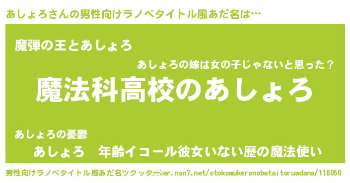 | 女子向けラノベタイトル風あだ名 | 『あしょろなんてお断りですっ。』 |