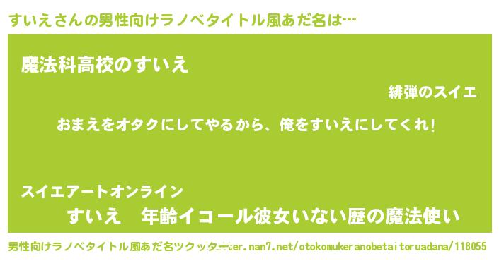 | ヒーロー風カッコイイあだ名 | 『愛の使者すいえ』『究極戦士スイエ』 |