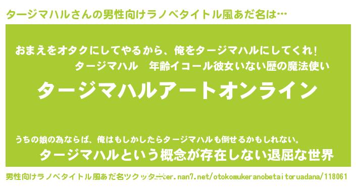 | ヘコむあだ名 | 『ターもー』『タージマハル(苦笑)』 |