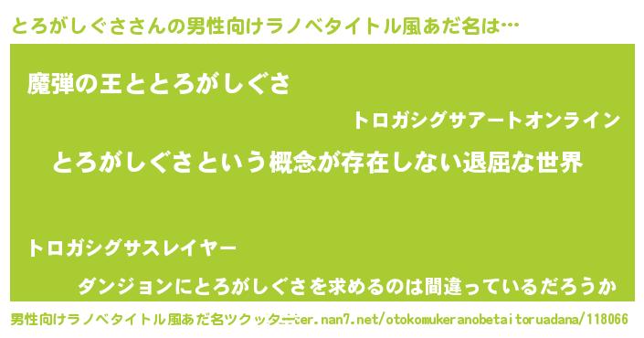 | ヒーロー風カッコイイあだ名 | 『ネオトロガシグサ』『仮面トロダー』 |