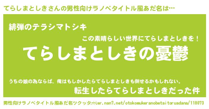 | ヒーロー風カッコイイあだ名 | 『スーパーテラシマトシキ』 |