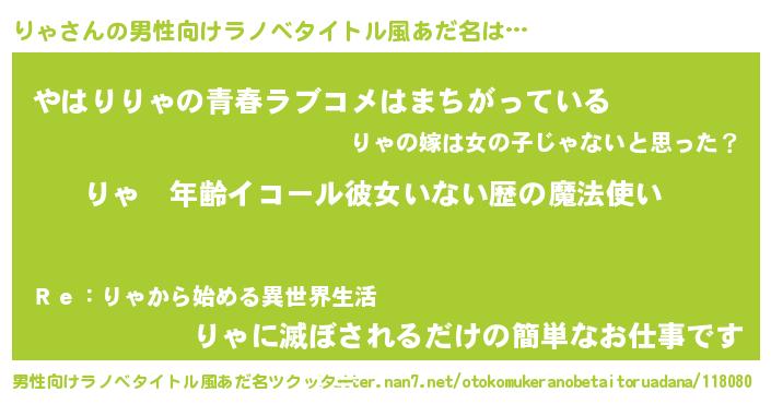 | ファンタジー風あだ名 | 『ユリリャヴァット』『エターナルリャー』 |
