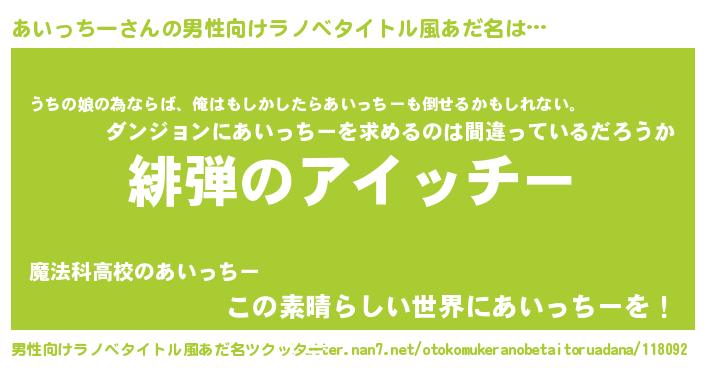 | 女子向けラノベタイトル風あだ名 | 『シンデレラあいっちー家の靴箱館』 |
