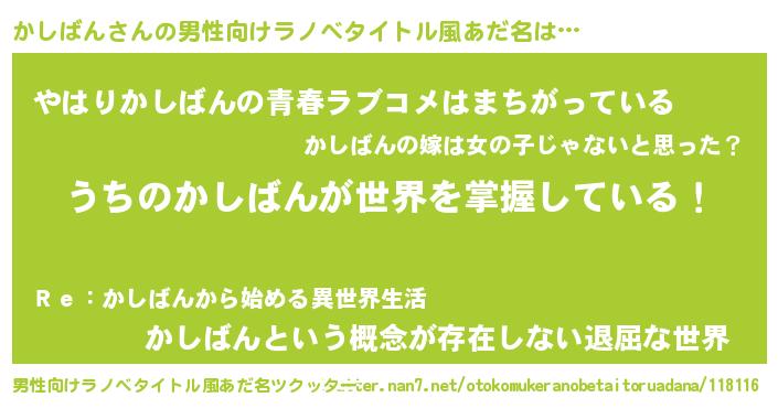 | ヒーロー風カッコイイあだ名 | 『ウルトラかしばんマン』『ネオカシバン』 |
