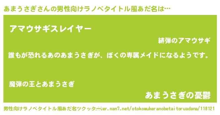 | 胡散臭い通販商品みたいなあだ名 | 『来世でも幸せになれる健康食品…その名も「あまうさぎ」』 |