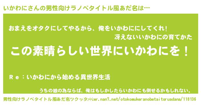 | 意味不明あだ名 | 『住所不定無職いかわに(59歳)』 |