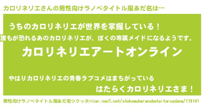 | 女子向けラノベタイトル風あだ名 | 『誰かこのカロリネリエを説明してください! ~契約から始まるウェディング~』 |