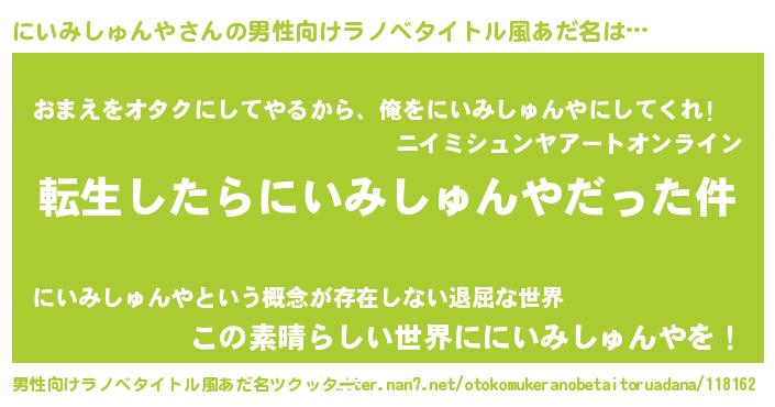 | ヘコむあだ名 | 『にいっふぃ~』『にいみしゅんや(笑)』 |