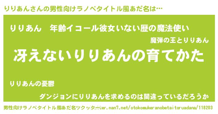 | 伝説のあだ名 | 『解き放たれた魔法使いりりあん』 |