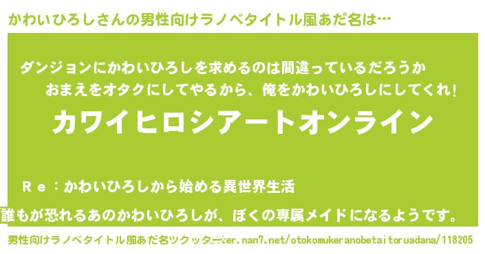 | 女子向けラノベタイトル風あだ名 | 『誰かこのかわいひろしを説明してください! ~契約から始まるウェディング~』 |