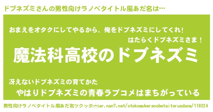 | ヒーロー風カッコイイあだ名 | 『超時空戦士ドブネズミ』『魔戒騎士ドブ』 |