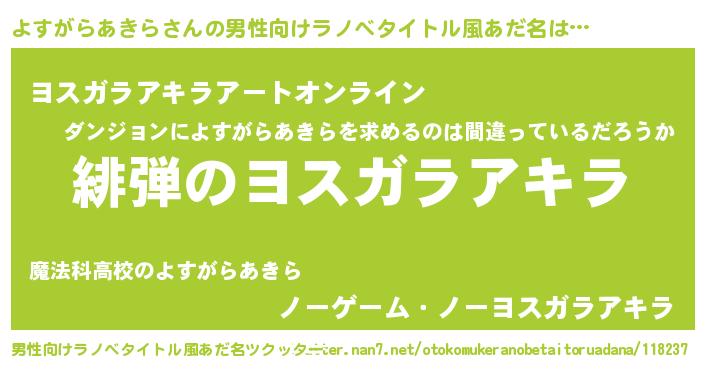 | ヒーロー風カッコイイあだ名 | 『スーパーヨスガラアキラ』 |