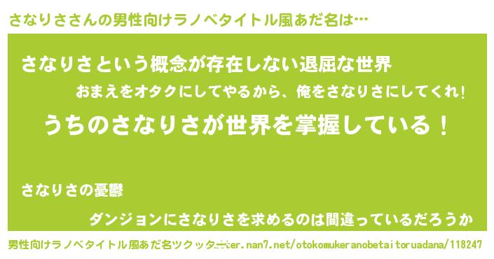 | ヘコむあだ名 | 『さなりさ(遠い目)』『さなお』 |
