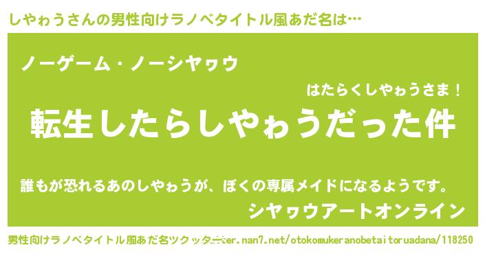 | 胡散臭い通販商品みたいなあだ名 | 『お金では代えられない隕石のかけら…その名も「しやゎう」』 |