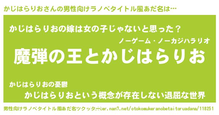 | 意味不明あだ名 | 『住所不定無職かじはらりお(4歳)』 |