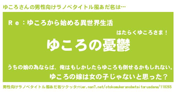 | 胡散臭い通販商品みたいなあだ名 | 『必ず成功する霊験あらたかなお札…その名も「ゆころ」』 |