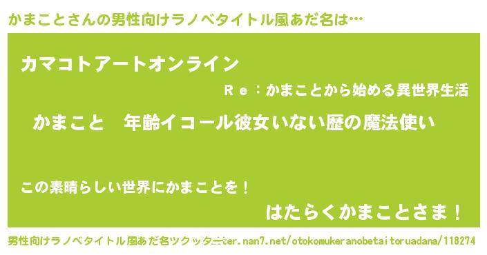| 胡散臭い通販商品みたいなあだ名 | 『億万長者になれる水晶球…その名も「かまこと」』 |