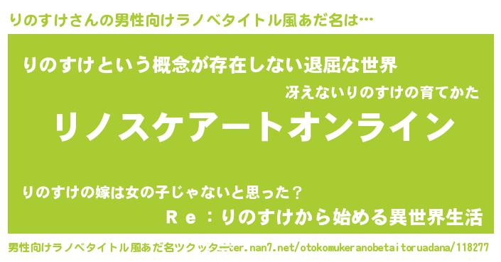 | 女子向けラノベタイトル風あだ名 | 『りのすけ姫と円卓の騎士』 |
