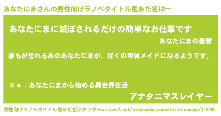 あなたにまさんの男性向けラノベタイトル風あだ名をツクッター!