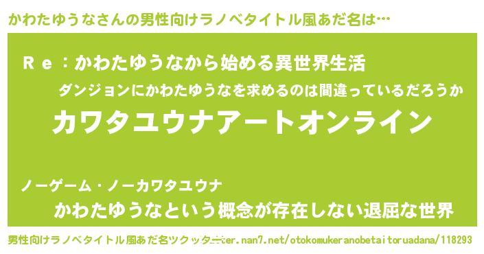 | ヘコむあだ名 | 『かわにゅー』『かわたゆうな(笑)』 |