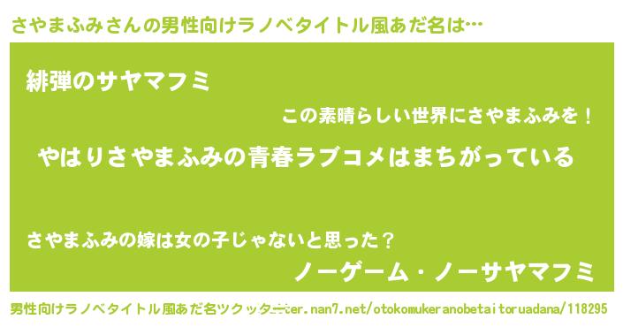 | 女子向けラノベタイトル風あだ名 | 『さやまふみの雑貨屋さん』 |
