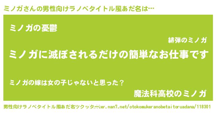 | ヒーロー風カッコイイあだ名 | 『スーパーミノガ』『超時空戦士ミノガ』 |