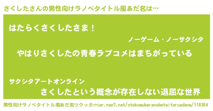 | 自動車の名前っぽいあだ名 | 『サクア』『ランサクギーニ』『サンR』 |