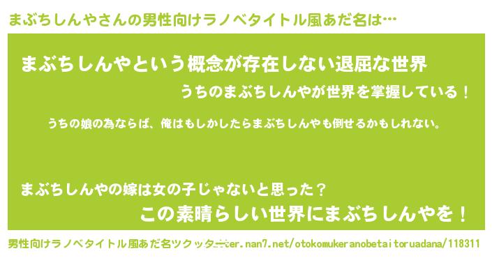 まぶちしんやさんの男性向けラノベタイトル風あだ名をツクッター!