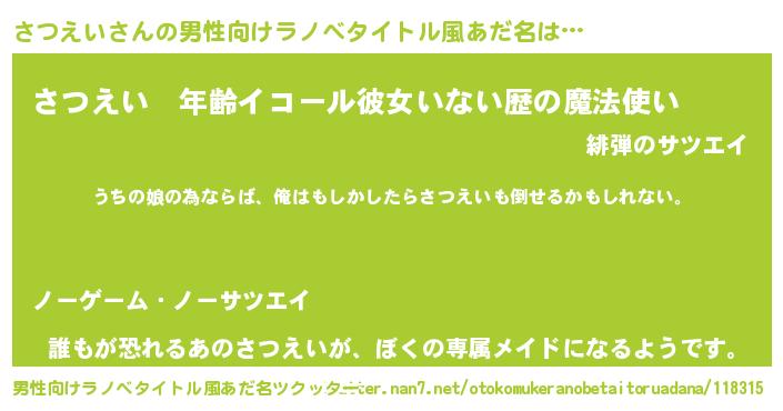 | ヘコむあだ名 | 『酢こんぶ』『さつえい(小並感)』 |