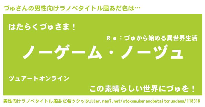 | 女子向けラノベタイトル風あだ名 | 『死神づゅの再婚』『首の姫と首なしづゅ』 |