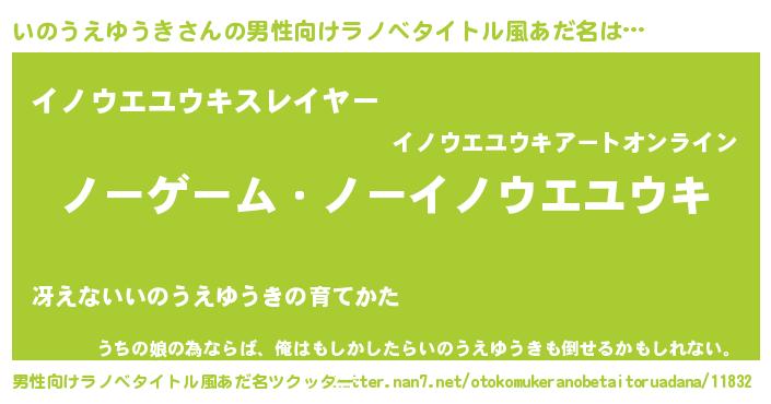 | 女子向けラノベタイトル風あだ名 | 『死神いのうえゆうきの再婚』 |