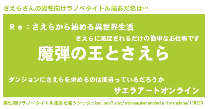 | ヒーロー風カッコイイあだ名 | 『仮面サエダー』『最強戦士サエラ』 |