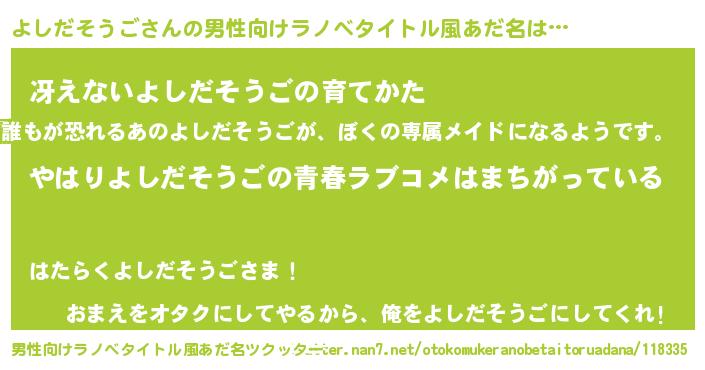 | ファンタジー風あだ名 | 『エターナルヨシダソウゴー』 |