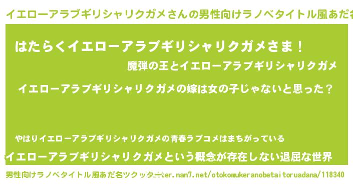| 女子向けラノベタイトル風あだ名 | 『イエローアラブギリシャリクガメの卵を拾いまして』 |