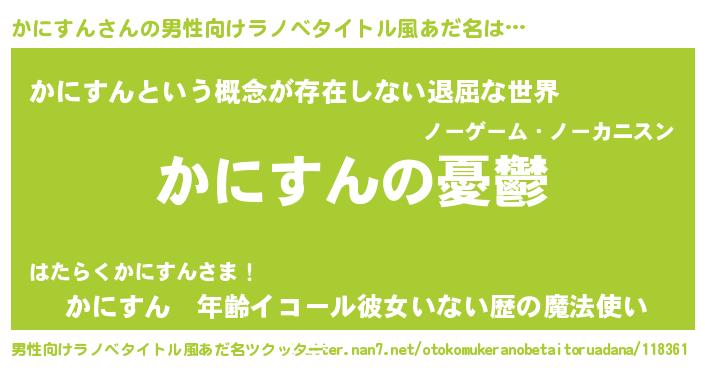 | 女子向けラノベタイトル風あだ名 | 『(仮)かにすんのやんごとなき事情』 |