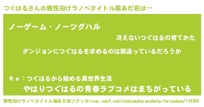 | 女子向けラノベタイトル風あだ名 | 『つぐはるの卵を拾いまして』 |