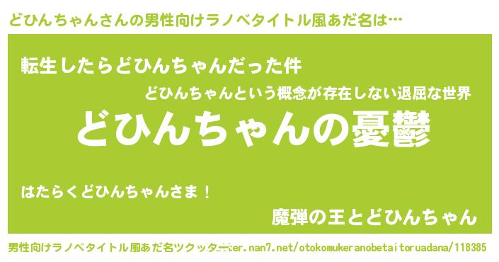 | 女子向けラノベタイトル風あだ名 | 『(仮)どひんちゃんのやんごとなき事情』 |