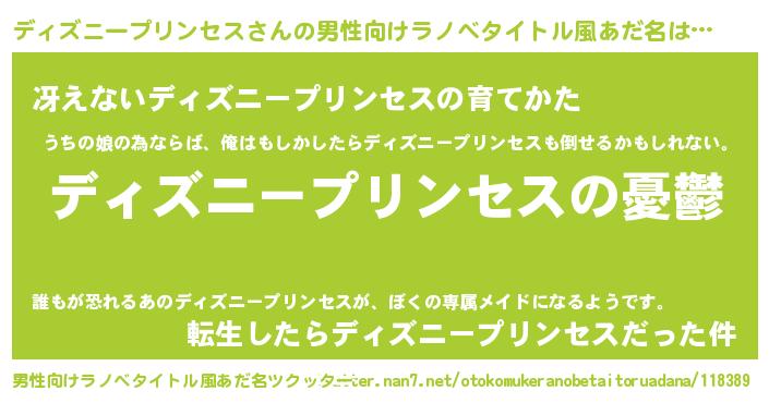 | 女子向けラノベタイトル風あだ名 | 『(仮)ディズニープリンセスのやんごとなき事情』 |