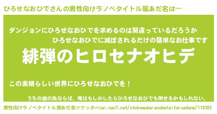 | 女子向けラノベタイトル風あだ名 | 『シンデレラひろせなおひで家の靴箱館』 |