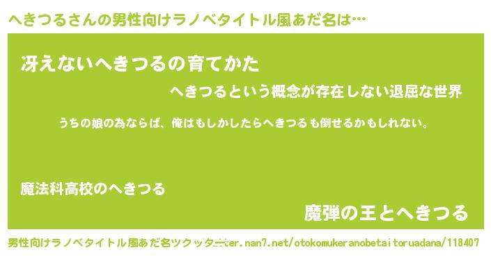 へきつるさんの男性向けラノベタイトル風あだ名をツクッター!