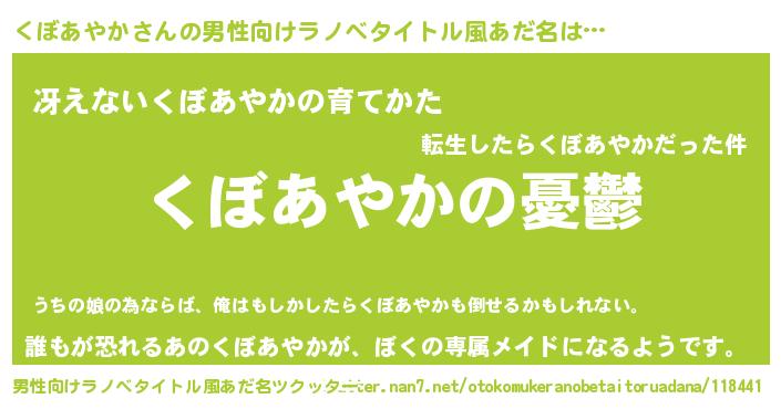 | 女子向けラノベタイトル風あだ名 | 『(仮)くぼあやかのやんごとなき事情』 |