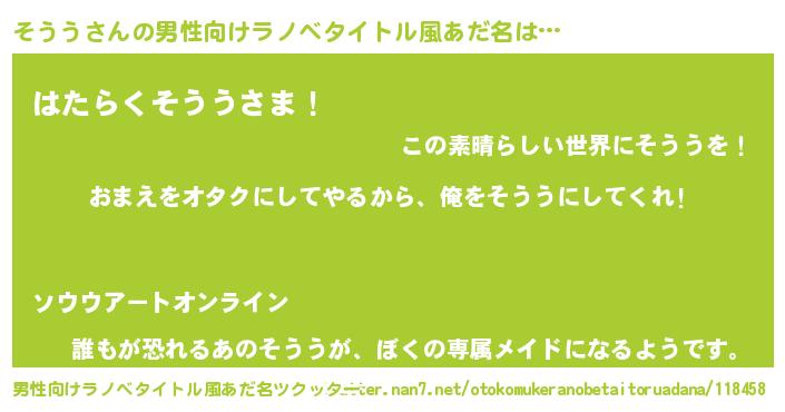 | 女子向けラノベタイトル風あだ名 | 『そうう恋絵巻』『首の姫と首なしそうう』 |