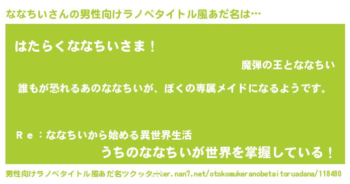 | 女子向けラノベタイトル風あだ名 | 『異世界でカフェななちいを開店しました。』 |