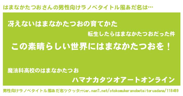 | 女子向けラノベタイトル風あだ名 | 『乙女ゲームの破滅フラグしかない悪役はまなかたつおに転生してしまった…』 |